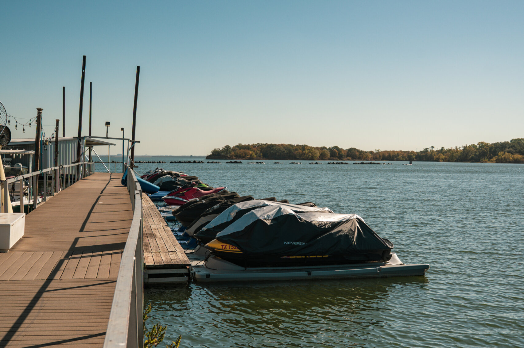 Enjoy sweeping views of the lake from one of our uncovered full service wet slips. Slips range from 25 feet to 60 feet long with end-ties available to accommodate boats larger than 55 feet. All slips are equipped with 2-foot fingers on each side with power and water hookups.